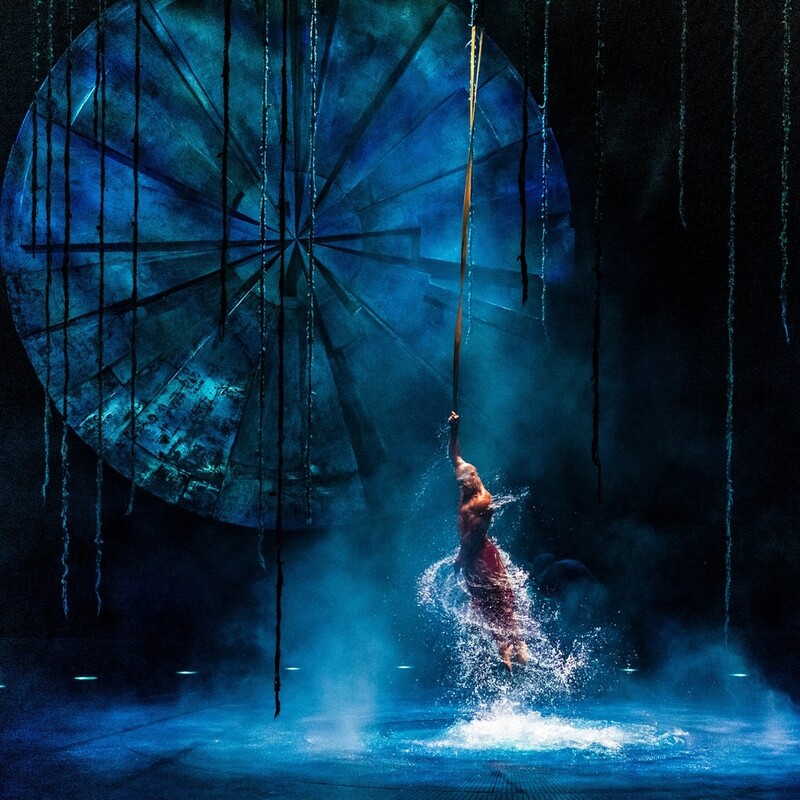 떨어지는 물줄기를 맞으며 공중그네에 매달려 기술을 선보이는 'CYR 휠 & 트라페즈'(CYR Wheel & Trapeze), 천장에 달린 두 갈래의 끈을 활용한 '에어리얼 스트랩'(Aerial Straps)에서는 물을 흩뿌리며 기계체조를 연상시키는 동작을 선보였다.