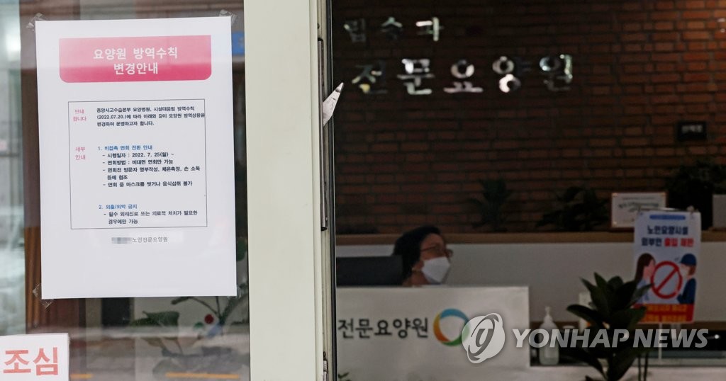 | ▲ 접촉면회 중단 안내문 붙은 요양원 [연합뉴스 자료사진] |