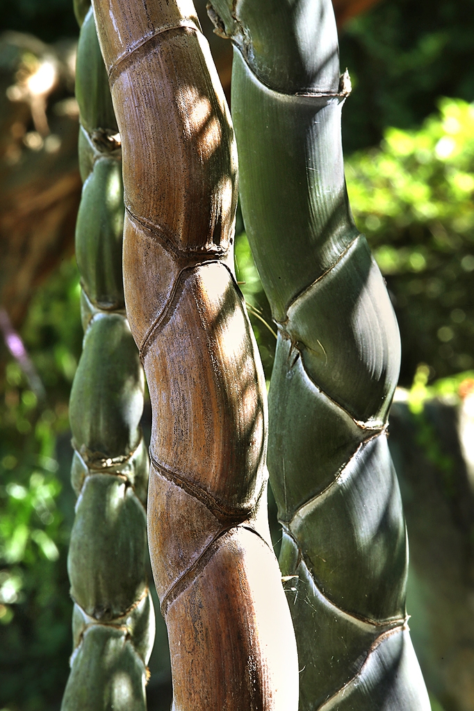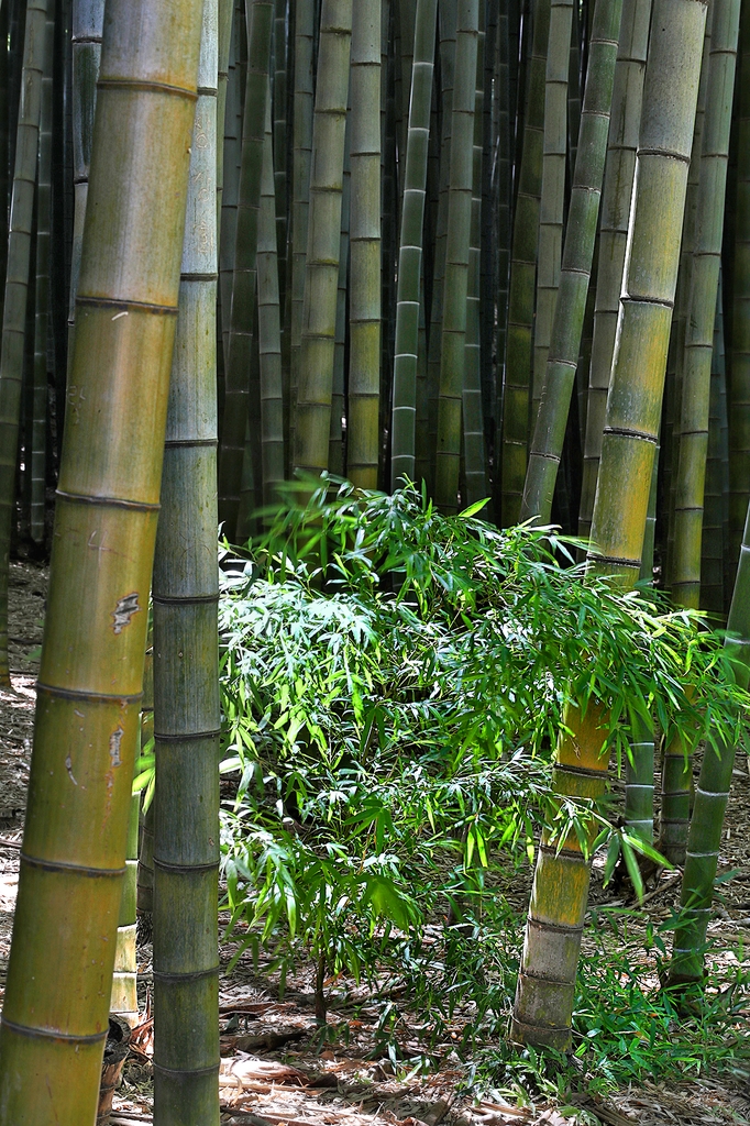 숲에는 두 손으로 움켜쥐기 벅찰 정도로 굵은 대나무들이 빽빽하게 솟아 있다.