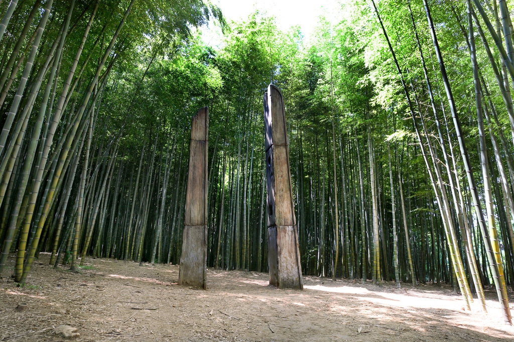 | ▲ 아홉산숲의 첫 번째 맹종죽숲. 드라마 '더 킹:영원의 군주' 촬영 당시 세운 두 개의 돌기둥은 가장 인기 있는 포토존이 됐다. [사진/전수영 기자] |