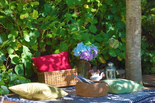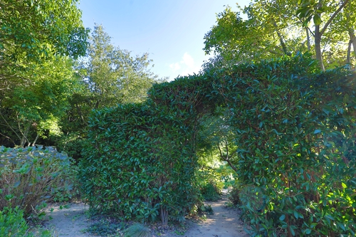 이 정원의 가장 큰 특징은 나무로 벽을 만든 '수벽'(樹壁)으로 공간들을 분리했다는 것이다. 수벽 뒤쪽에는 핑크빛 테이블보가 덮인 테이블과 의자가 있다. 연인들이 좋아할 공간처럼 보였다.