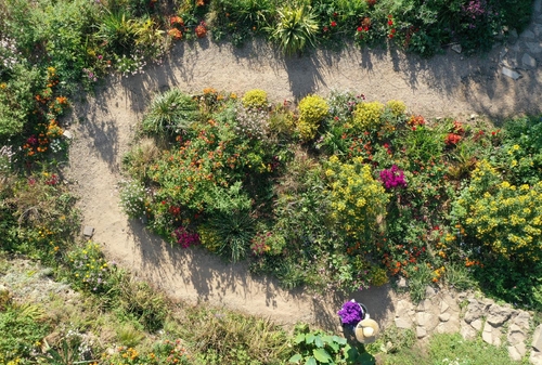 구경하기 힘들었던 벌과 나비도 어디서 나타났는지 아침 일찍부터 꽃에 매달려 있었다. 좁은 S자 길로 구성된 계류정원에는 화려한 꽃들이 앞다퉈 피어 있었다.