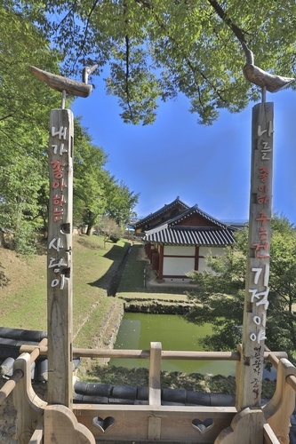 계단에 올라서니 향교 뒤쪽의 연못이 입체적으로 들어온다. 향교 내부에서도 잘 볼 수 없는 각도다.