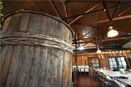 | ▲ 백련 양조문화원 내부. 나무로 된 거대한 통은 일제강점기 일본인들이 부산에 세운 청주 공장에서 쓰던 발효통이다. [사진/전수영 기자] |