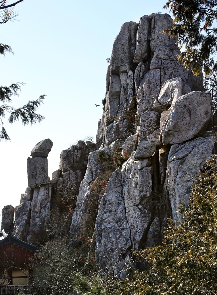 | ▲ 거대한 장군암과 허리 굽혀 절하는 듯한 모습의 형리암은 마치 장군과 신하의 모습처럼 보인다. [사진/전수영 기자] |