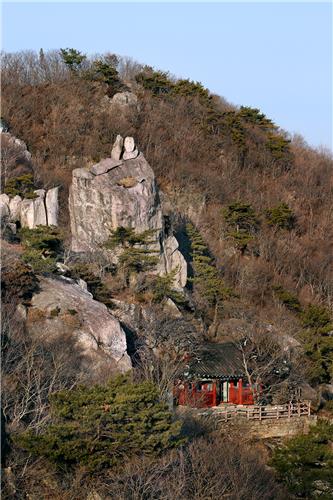 | ▲ 27경인 상사암은 금산을 통틀어 가장 웅장하고 큰 암봉이다. [사진/전수영 기자] |