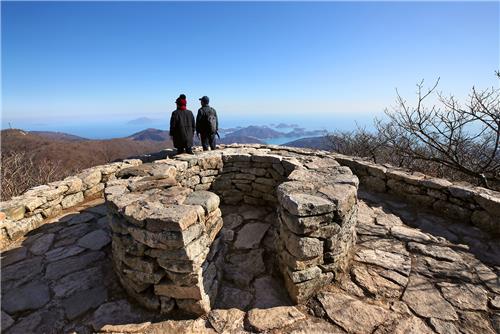 | ▲ 금산 정상에는 고려 시대부터 사용했던 봉수대가 남아있다. [사진/전수영 기자] |