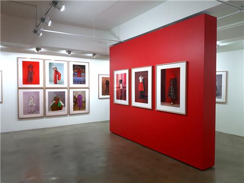 ▲ 청담동 노아빌딩 호리아트스페이스의 안창홍 디지털펜화 초대개인전 '유령 패션' 전시 [호리아트스페이스 제공]