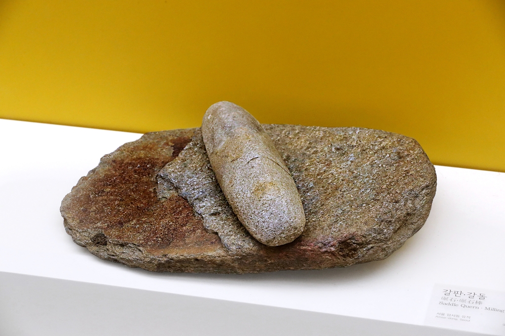 | ▲ 맷돌과 같은 기능을 했던 갈판과 갈돌 [사진/조보희 기자] |