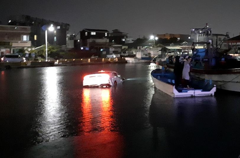(제주=연합뉴스) 전지혜 기자 = 지난달 26일 오후 9시 50분께 제주시 조천읍 함덕 정주항 인근 해상으로 K5 렌터카가 추락했다.