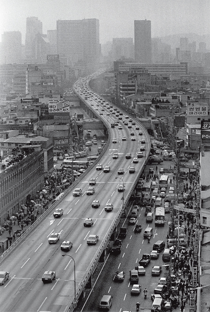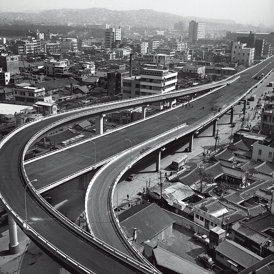 | ▲ 청계천을 덮은 복개 공사를 마치고 그 위에 개통한 청계고가도로. 1969년 [서울시 제공] |