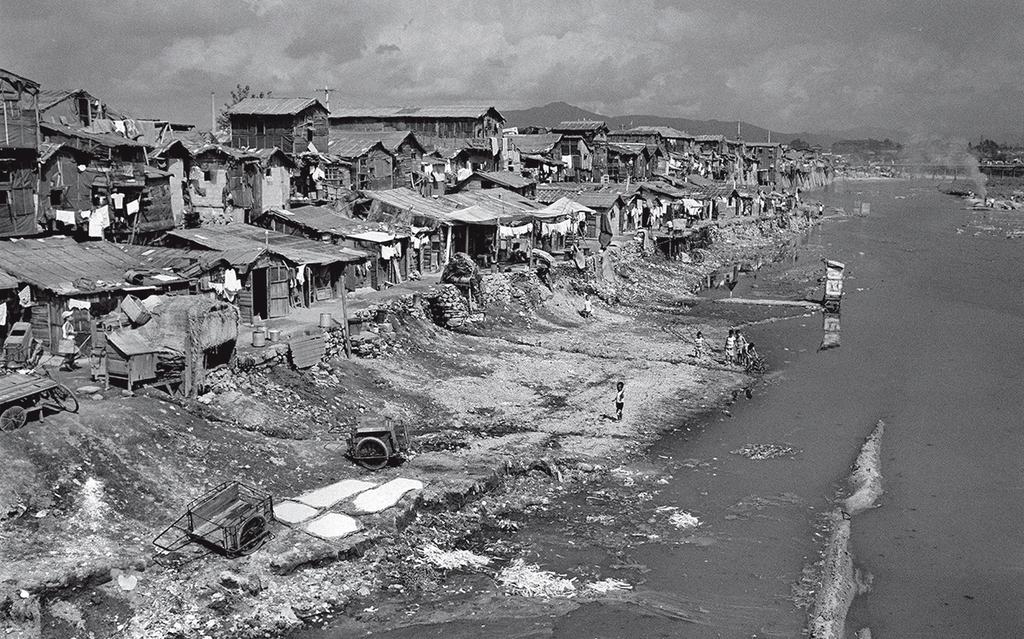 | ▲ 현재 청계8가 인근에 늘어서 있던 판잣집들. 하천물은 폐수였다. 1967년 [한치규 제공] |