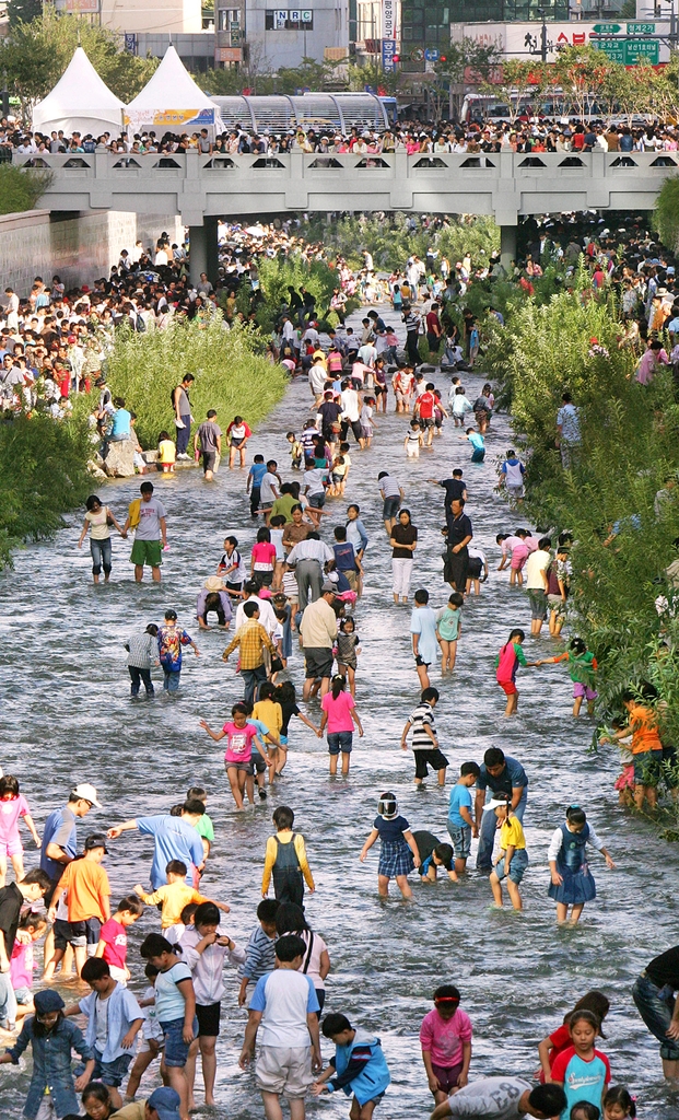 | ▲ 청계천이 복원되자 청계천2가 일대가 구경나온 시민들로 크게 붐비고 있다. 2005년 [연합뉴스 자료사진] |