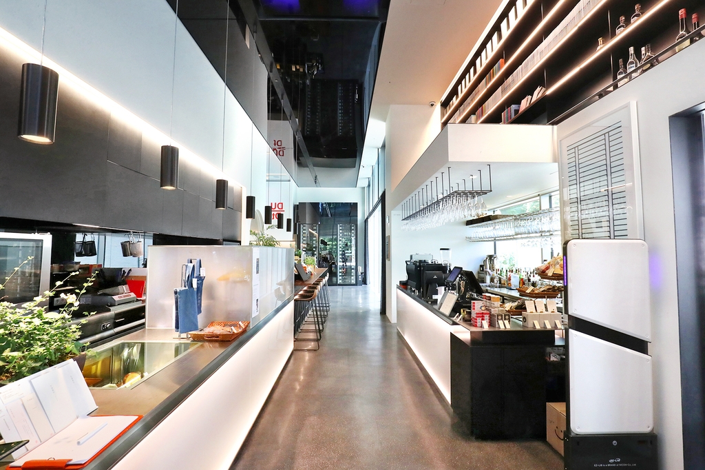 | ▲ 소전서림 건물 1층의 카페 겸 바. 이곳에서 와인 한 잔을 사 들고 도서관으로 내려가 책을 읽어도 된다. [사진/조보희 기자] |