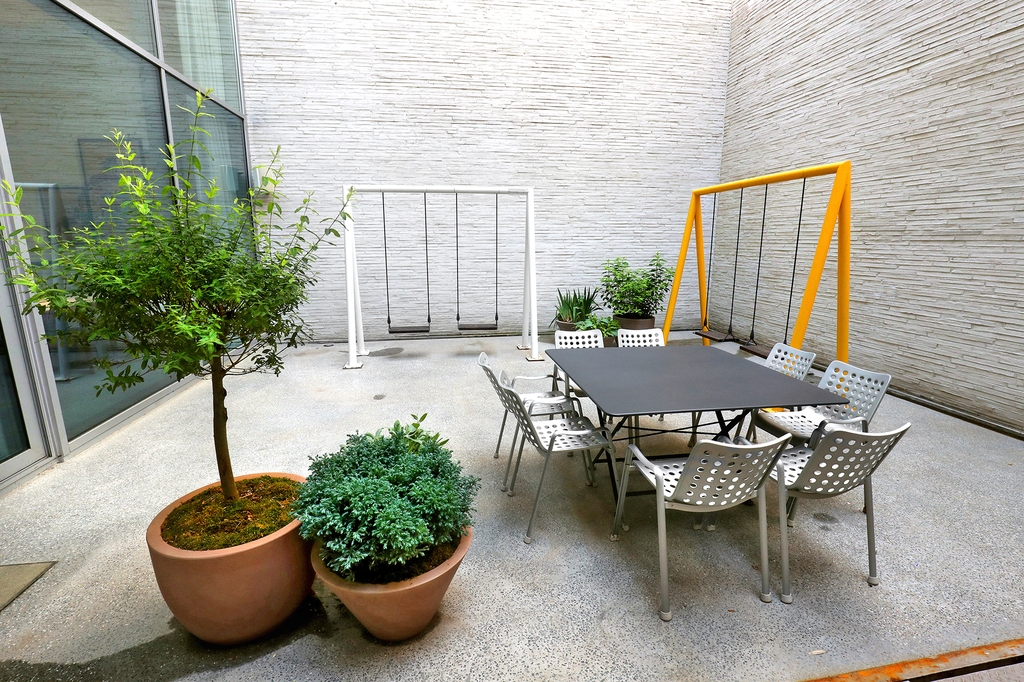 | ▲ 테라스에 놓인 '스윙체어'에 앉아 머리를 식히거나 담소를 나눌 수 있다. [사진/조보희 기자] |