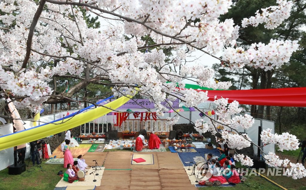 | ▲ "풍어와 안전을 비나이다" (제주=연합뉴스) 박지호 기자 = 30일 제주시 건입동 사라봉 칠머리당에서 영등송별제가 봉행되고 있다.