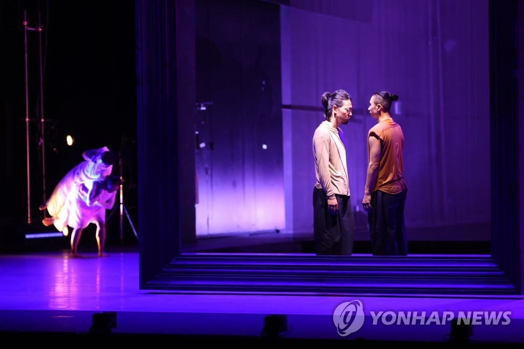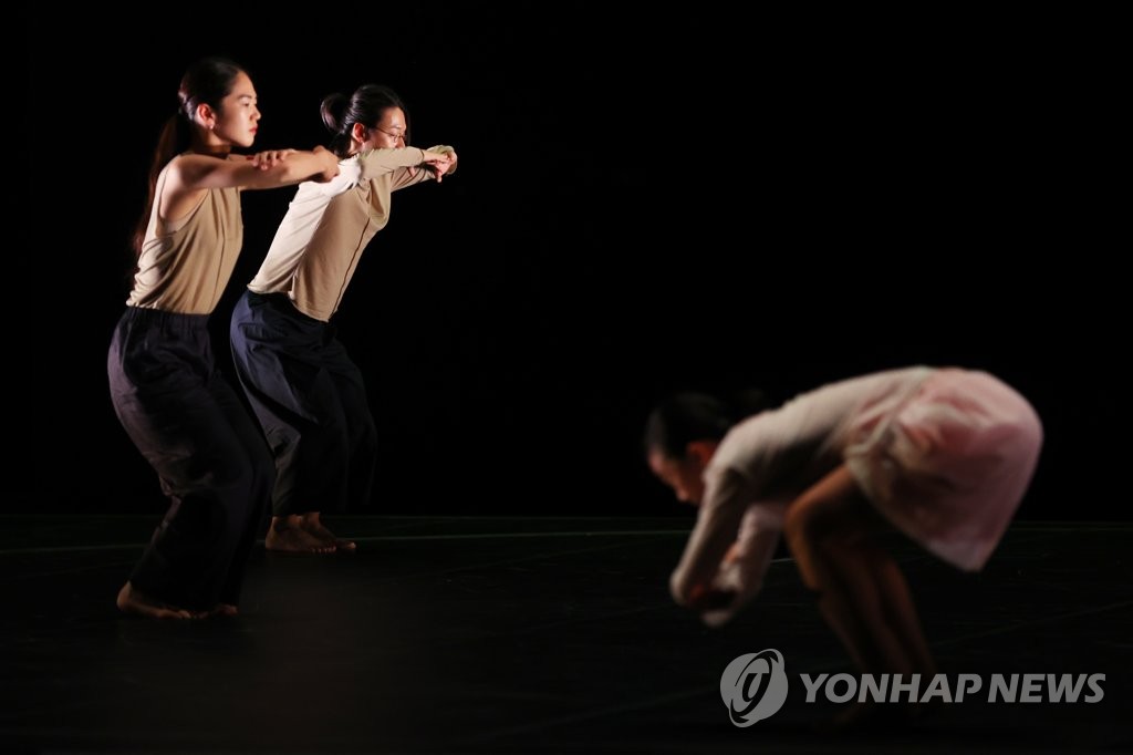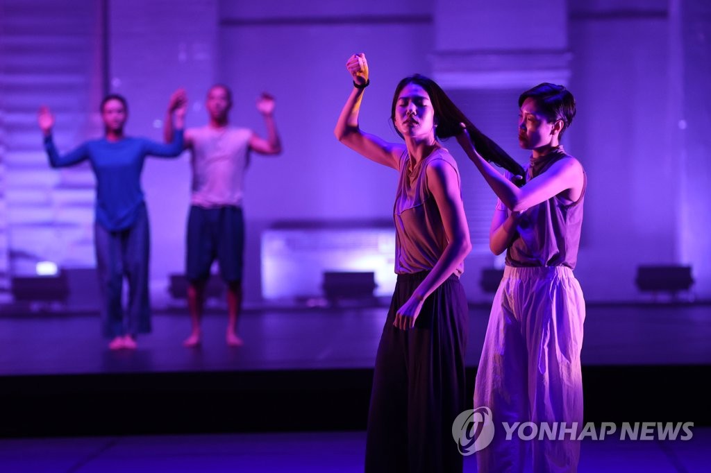 (서울=연합뉴스) 최주성 기자 = 무대 뒤편에서 걸어 나온 한 무용수가 크게 숨을 들이마셨다 내뱉기를 반복한다. 무용수는 숨을 내뱉으며 울음을 터뜨리는 듯한 소리를 내더니 이내 다시 웃는 소리를 낸다.