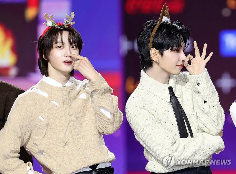 ▲ 루돌프로 변신한 보이넥스트도어 (영종도=연합뉴스) 이재희 기자 = 그룹 보이넥스트도어가 25일 오후 인천 영종도 인스파이어 엔터테인먼트 리조트에서 열리는 '2023 SBS 가요대전'에서 포즈를 취하고 있다. 2023.12.25 scape@yna.co.kr