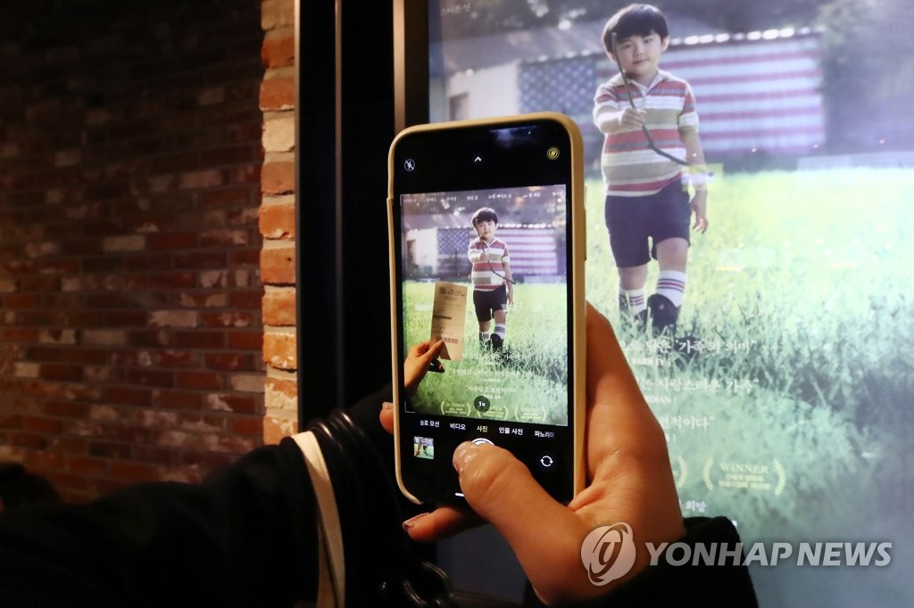 | ▲ '미나리' 4일 연속 박스오피스 1위 (서울=연합뉴스) 진연수 기자 = 7일 서울 시내 한 영화관을 찾은 관람객이 영화 '미나리' 포스터 앞에서 인증샷을 찍고 있다. 영화진흥위원회 영화관 입장권 통합전산망 집계에 따르면 골든글로브 최우수외국어영화상을 수상한 영화 '미나리'는 지난 6일 하루 동안 8만7천975명의 관객을 동원하며 누적 관객수는 19만5천732명을 기록했다. 2021.3.7 jin90@yna.co.kr |