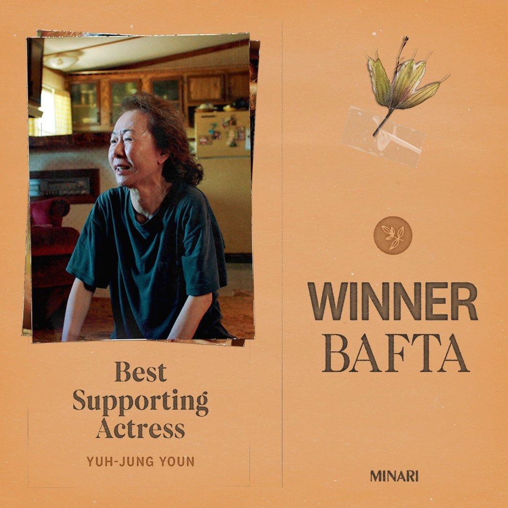 | ▲ This image from the Twitter account of "Minari" highlights Youn Yuh-jung's best supporting actress win at the British Academy of Film and Television Arts (BAFTA) Film Awards on April 11, 2021. (PHOTO NOT FOR SALE) (Yonhap) |