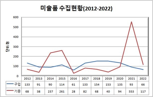 2021년 기점으로 수집 미술품 중 구입보다 기증 더 많아져