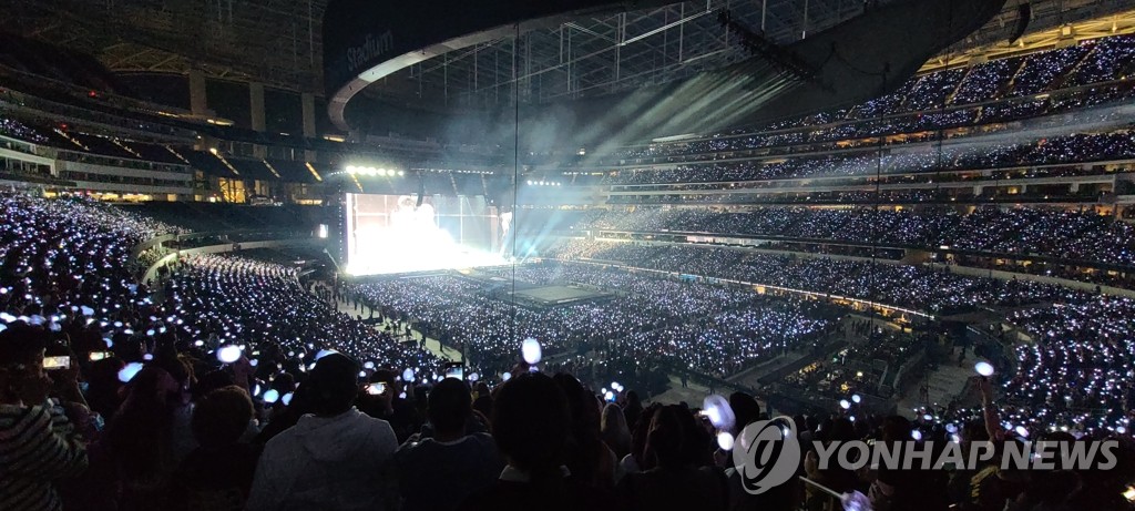 | ▲ BTS 콘서트, 최첨단 무대 기술 총망라 (로스앤젤레스=연합뉴스) 28일(현지시간) 미국 로스앤젤레스(LA) 소파이 스타디움에서 방탄소년단(BTS) 콘서트가 성료했다. 콘서트에는 레이저, 홀로그램 등 최첨단 무대 기술이 등장했다. 콘서트는 다음 달 3일, 4일 2회의 공연을 남겨놓고 있다. 2021.11.29 [독자 제공. 재판매 및 DB 금지] photo@yna.co.kr |