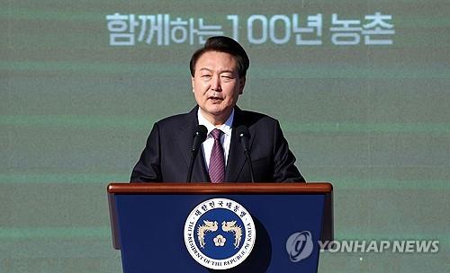 Yoon made the pledge in a congratulatory speech during a ceremony to mark Farmers Day in Suwon, 30 kilometers south of Seoul. The goal was one of his presidential campaign pledges.