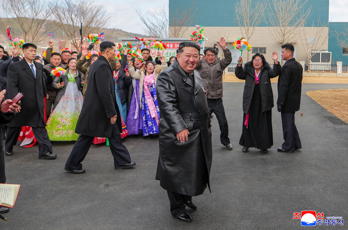North Korean leader Kim Jong-un (C) is welcomed by residents as he attends the inauguration ceremony of regional factories in Jangyon, South Hwanghae Province, western North Korea, on Dec. 18, 2025, in this photo released by the North's official Korean Central News Agency the next day. (For Use Only in the Republic of Korea. No Redistribution) (Yonhap)