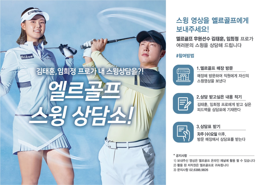 엘르골프는 "4월 30일까지 엘르골프 매장을 찾는 고객이 보내준 스윙 영상을 보고 김태훈, 임희정 선수가 조언을 건네는 특별 이벤트를 진행한다"고 27일 밝혔다.