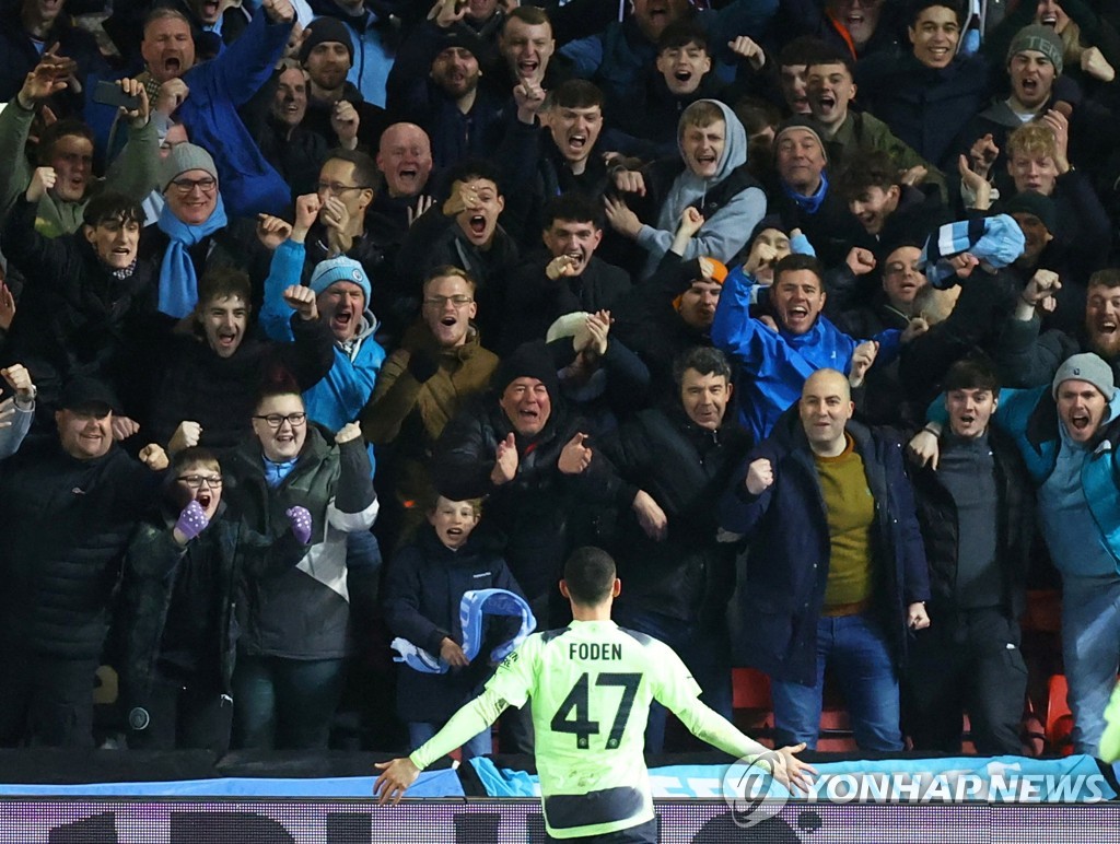 | ▲ 관중 앞에서 골 세리머니 펼치는 포든 [로이터=연합뉴스] |