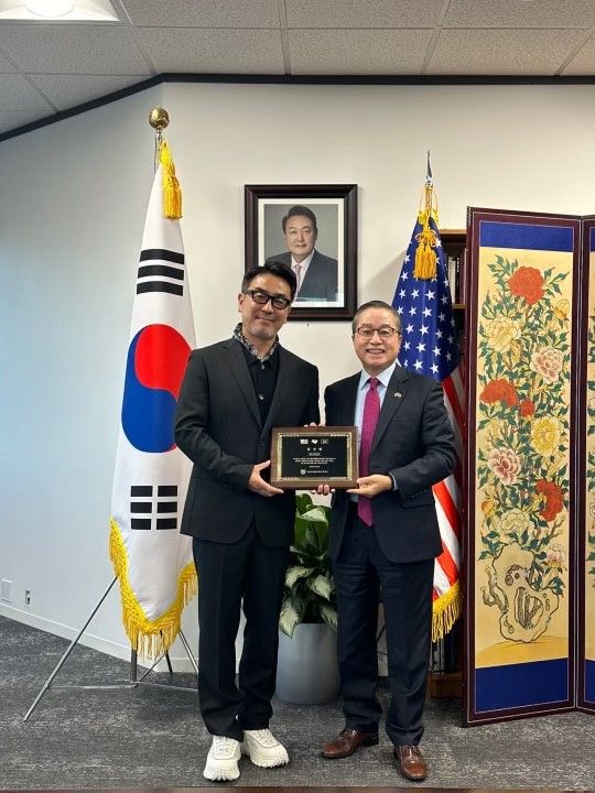 정영호 총영사는 4일 휴스턴총영사관에서 배우 류승룡에게 감사패를 전달했다.