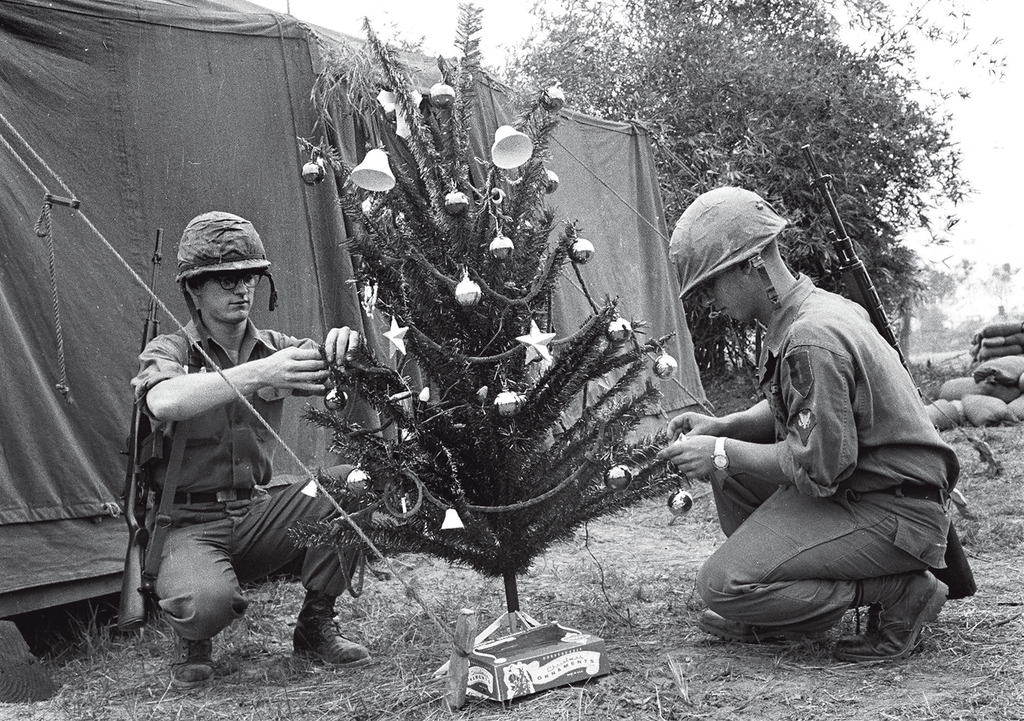 | ▲ 베트남 전쟁에 참전한 한국군이 막사에서 트리를 만들고 있다. 1966년 [연합뉴스 자료사진] |