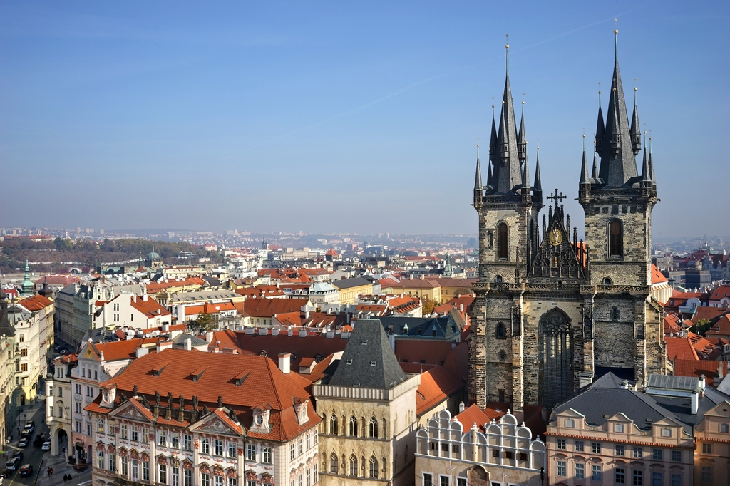 프라하 구시가지 광장에 자리한 옛 시청 전망대는 중세와 근대 유럽 건축물들의 박람회장으로 관광객들을 데려간다.