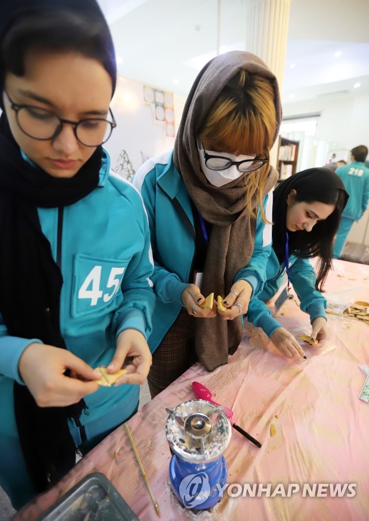 ▲ '달고나 뽑기' 하는 이란 대학생 (테헤란=연합뉴스) 이승민 특파원 = 17일(현지시간) 주이란 한국대사관에서 열린 '한국 문화 체험 행사'에서 이란인 대학생이 '달고나 뽑기'를 하고 있다. 2021.12.17 logos@yna.co.kr