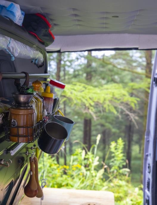 부부는 갖가지 살림 도구들을 승합차 내부에 싣고 다니고 있었다.