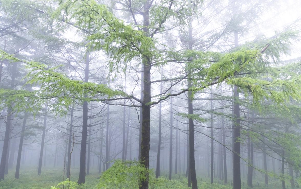 ▲ 운해 속의 일본잎갈나무 군락 [사진/성연재 기자]