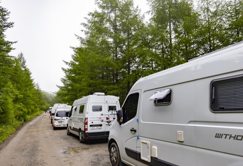 주차된 20여 대의 차량은 캠핑카와 승합차, RV 등 다양했다.
