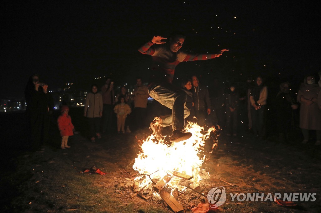 | ▲ 모닥불 뛰어넘으며 행운 비는 이란인 [AP 연합뉴스 자료사진. 재판매 및 DB 금지] |