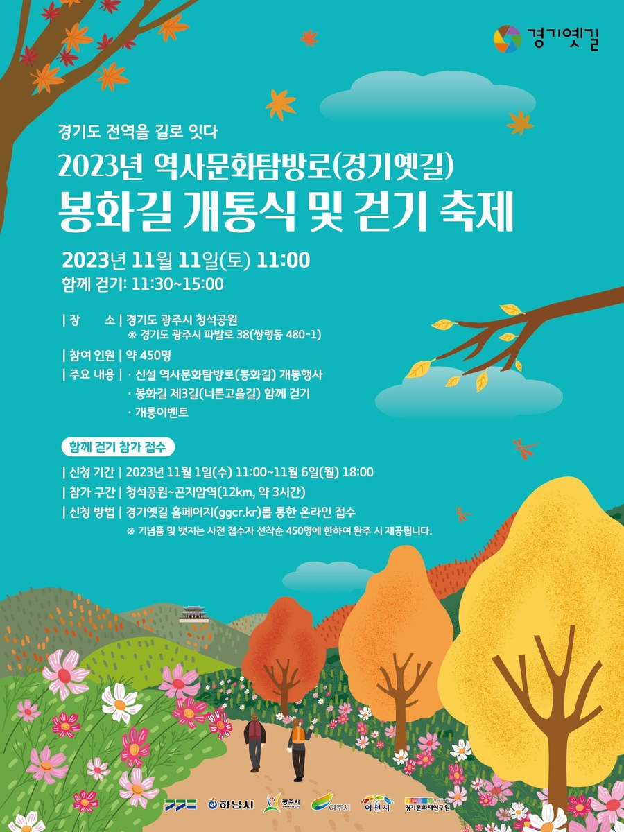 봉화길 개통식 및 걷기 축제의 참가 접수는 11월 1~6일 경기옛길 누리집(ggcr.kr)을 통해 진행된다.