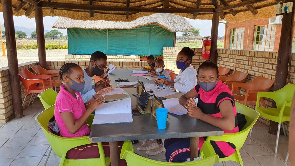 | ▲ 태블릿 놓고 열심히 자습하는 방과후 학생들 (라모코카<남아공>=연합뉴스) 김성진 특파원 = 10일(현지시각) 남아프리카공화국 노스웨스트주 라모코카 마을의 '아프리카 어린이 돕는 모임'에서 방과후 교실 학생들이 앞에 태블릿 PC를 놓고 공부하는 모습. 2021.11.11 sungjin@yna.co.kr |
