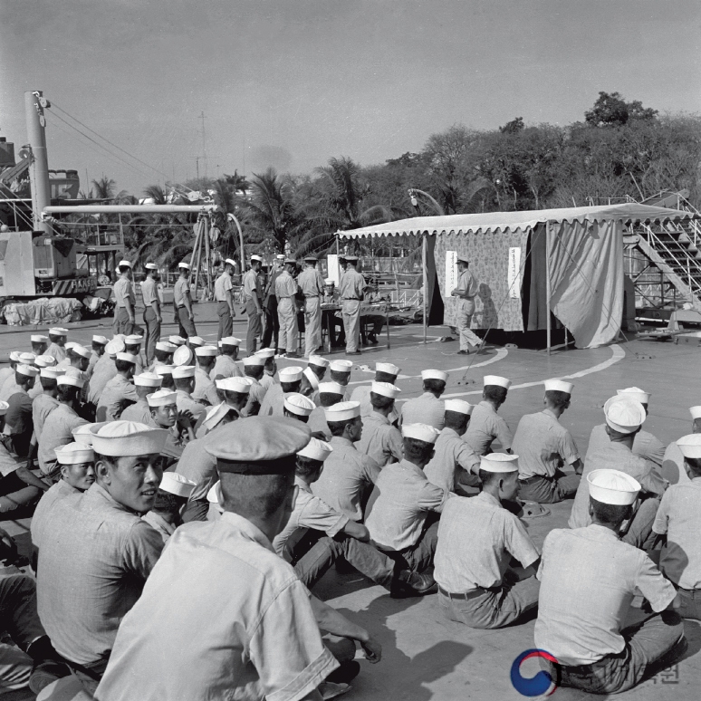 | ▲ 베트남에 파병된 백구 부대 장병들이 제6대 대통령 선거 부재자 투표를 하고 있다. 1967년 [중앙선관위 제공] |