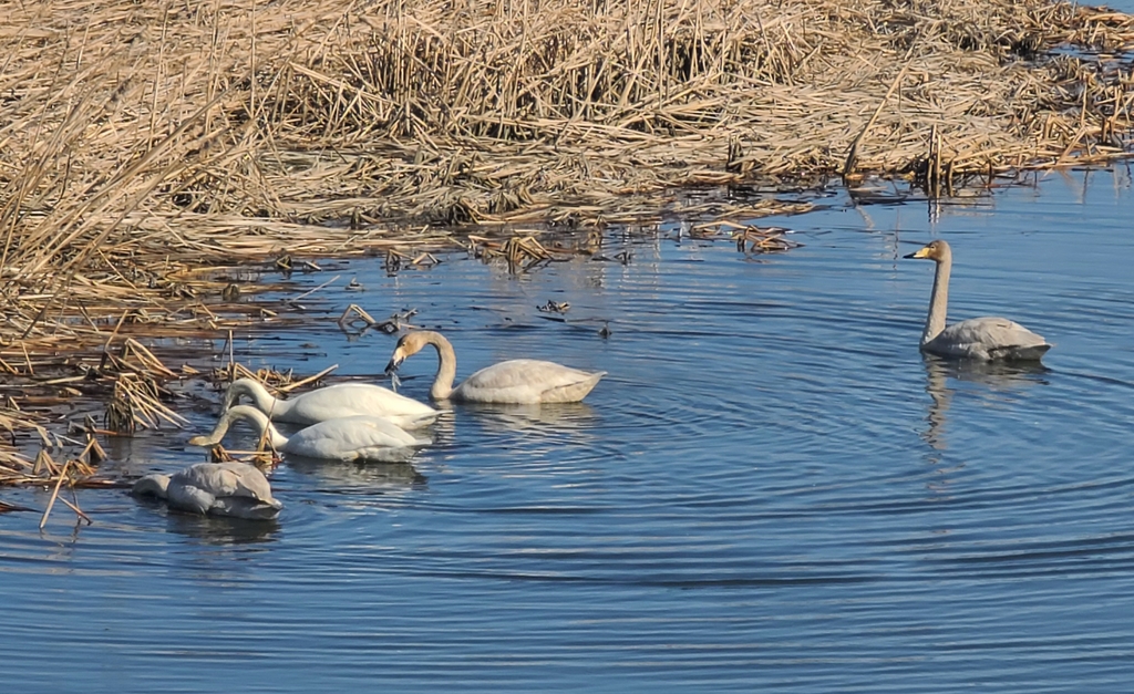 남녘의 꽃소식과 함께 이제 곧 고향으로 돌아갈 날이 가까워져 오고 있는 큰고니 가족.