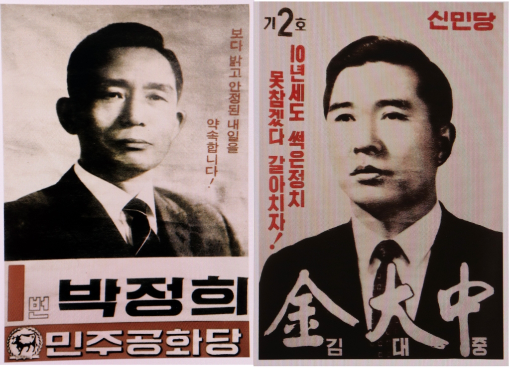 | ▲ 제7대 대통령 선거 민주공화당 박정희 후보와 신민당 김대중 후보 선거 벽보. 1971년 [국가기록원 제공] |