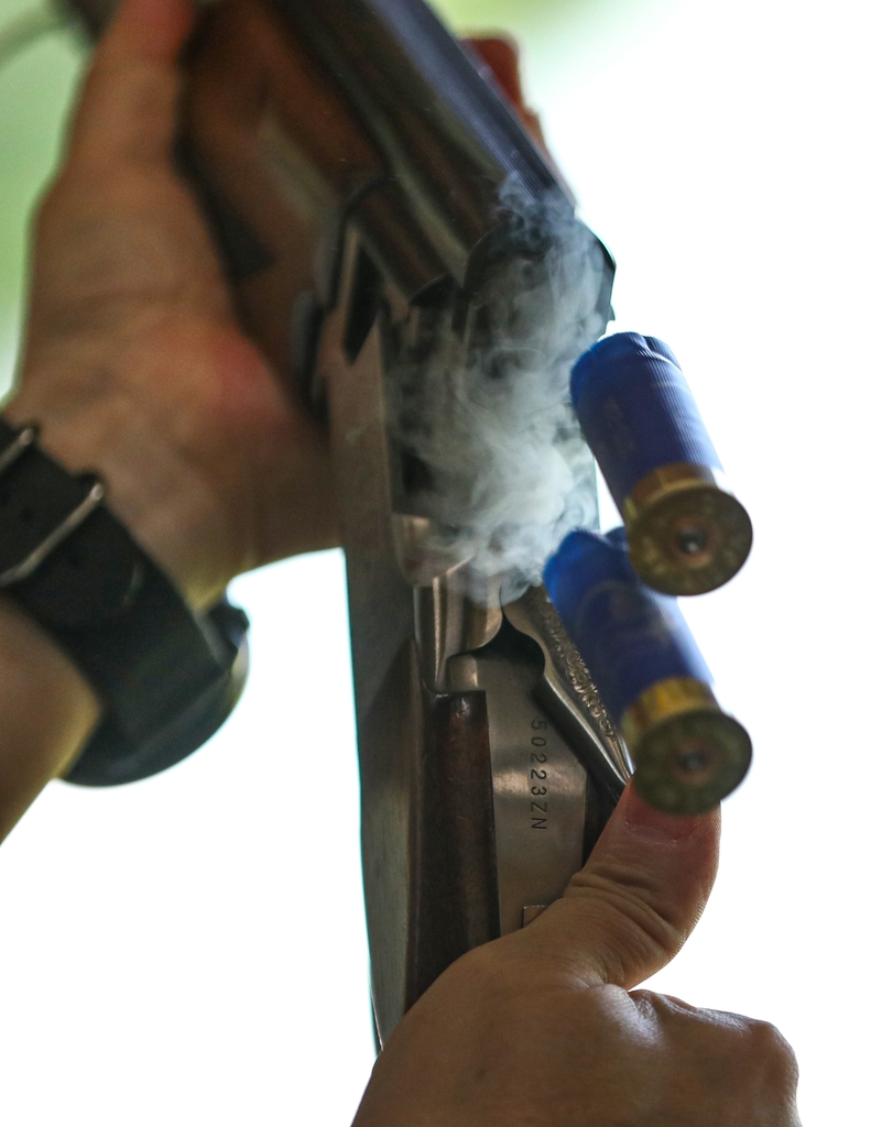 연이은 두 발의 사격을 끝내고 총을 내렸다. 손잡이 위 레버를 엄지로 젖힌 뒤, 총신을 꺾었다. 약실 안에 있던 탄피가 짙은 화약 연기를 뿜어내며 자동으로 방출됐다.