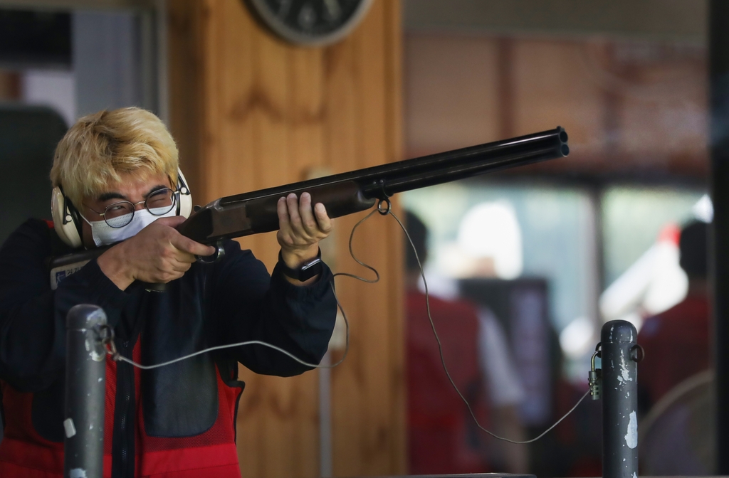 | ▲ 생활체육 대축전 클레이 트랩 부분 1위 경력의 김기태 씨가 클레이 사격 보이고 있다. [사진/진성철 기자] |