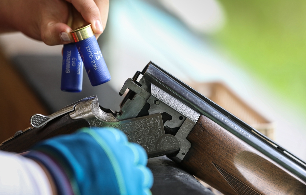 먼저 정면을 향해 두 발을 45도로 벌리며 안정감 있게 섰다. 오른손으로 가운데가 꺾인 베레타 산탄총의 총 손잡이를 쥐고 왼손으로 덮개를 잡았다. 총을 닫은 뒤 개머리판을 어깨에 단단히 견착하고, 볼을 개머리 위에 가볍게 올렸다. 머리를 앞으로 조금 숙여 총열과 눈을 일직선으로 맞추었다. 그리곤 상체와 허리를 이용해 날렵하게 총을 움직였다.