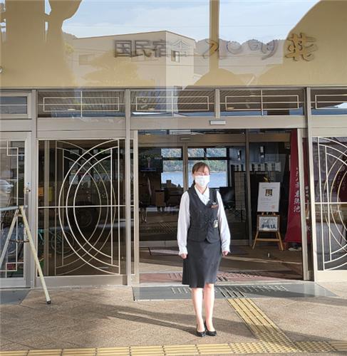 | ▲ 버스를 향해 인사하는 료칸 직원 [사진/성연재 기자] |