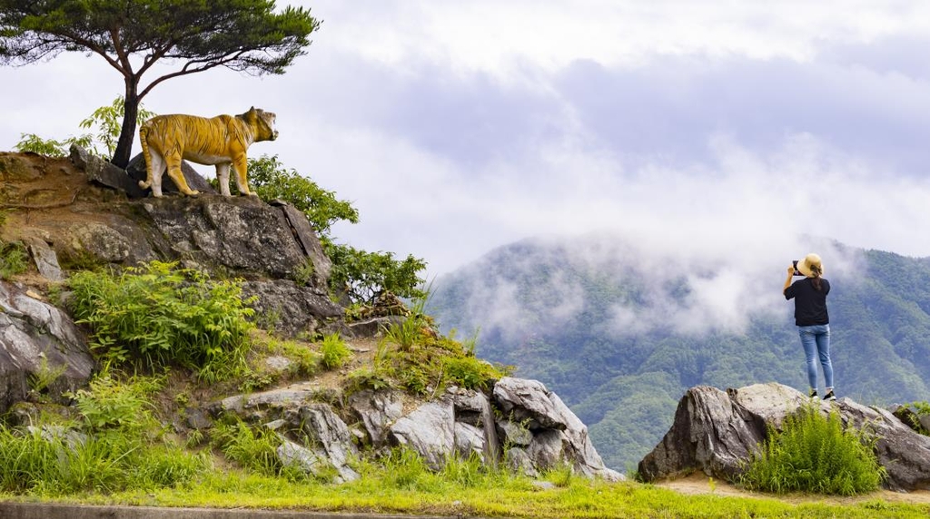 전망대 위쪽에는 호랑이 모형 2마리가 아름다운 청량산을 바라보고 있다.