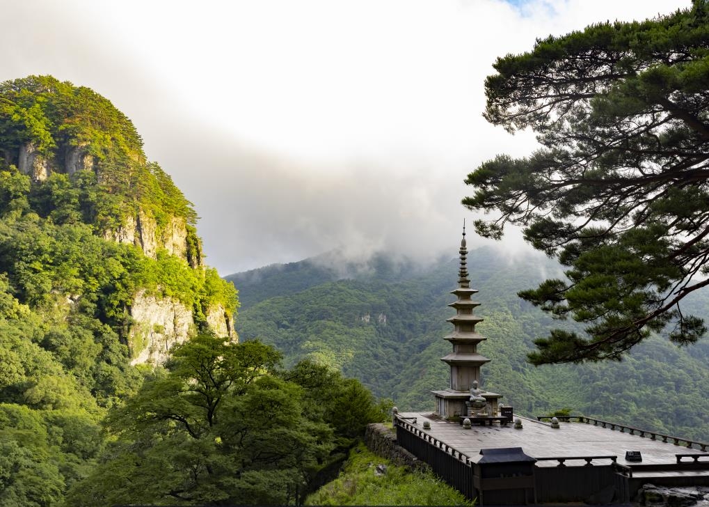 때마침 앞쪽 봉우리에 채 걷히지 않은 구름이 여러 겹으로 감겨 있다. 말 그대로 청량함 그 자체다.