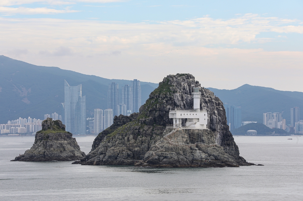 | ▲ 부산의 상징인 오륙도 뒤로 마린시티, 해운대 동백섬 등이 보인다. [사진/진성철 기자] |